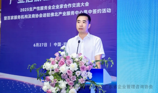 6月27日,由广东省中小企业服务联盟和佛北产业服务中心共同承办,广东省企业管理咨询协会作为特别支持单位,主题为产业启新程 服务聚势能的2025生产性服务业企业家合作交流大会在佛山成功举办,工信部中小企业发展促进中心原副主任、中国工业互联网研究院原副院长罗俊章,广东省中小企业服务中心、省生产服务业促进中心原主任陈健,佛山市南海区人民政府副区长劳剑锋,佛山市南海区狮山镇人民政府党委副书记、镇长冯惠恩,广东省企业管理咨询协会副会长陈勇达,佛北服务中心主任曹文华等出席了活动。大会将近300多家企业家代表参加。