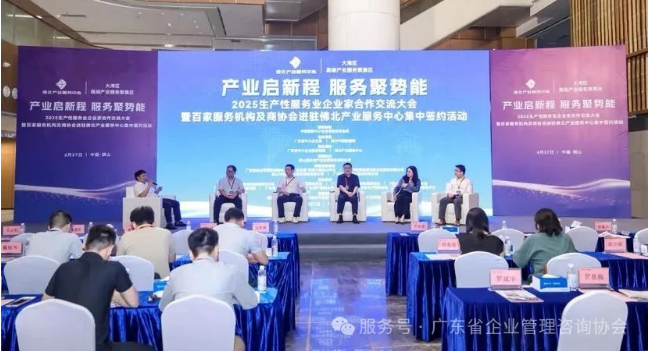 6月27日,由广东省中小企业服务联盟和佛北产业服务中心共同承办,广东省企业管理咨询协会作为特别支持单位,主题为产业启新程 服务聚势能的2025生产性服务业企业家合作交流大会在佛山成功举办,工信部中小企业发展促进中心原副主任、中国工业互联网研究院原副院长罗俊章,广东省中小企业服务中心、省生产服务业促进中心原主任陈健,佛山市南海区人民政府副区长劳剑锋,佛山市南海区狮山镇人民政府党委副书记、镇长冯惠恩,广东省企业管理咨询协会副会长陈勇达,佛北服务中心主任曹文华等出席了活动。大会将近300多家企业家代表参加。